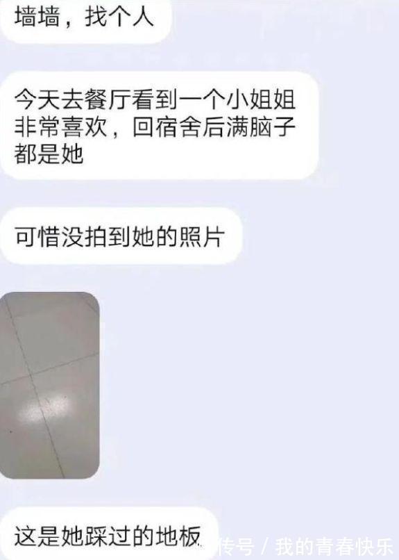 而接下来的这位同学就更搞笑了,他在去餐厅的时候看到一个小姐姐非常喜欢,但是当时并没有拍下这位小姐姐的照片,于是就将小姐姐踩过的地板拍了下来,想要表白墙帮忙找一下这位小姐姐,如此行为实在是有些无奈,估计此时的表白墙也感觉挺为难的。